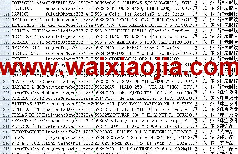 厄瓜多爾采購商名單數(shù)據(jù)為Excel格式,信息可任意修改、復(fù)制、打印、導(dǎo)出及導(dǎo)入到傳真、郵件群發(fā)等軟件中,無任何限制。