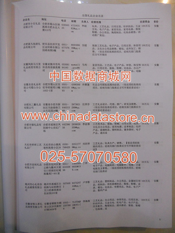 某省或直轄市 | 如上海、浙江禮品企業名單 | 80% - 90% | 600元 | 附贈一冊禮品紙質印刷品 |