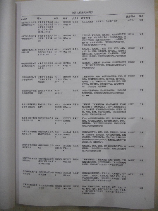 2024年新版中國機械采購企業黃頁,收錄了全國各地經營范圍涉及機械產品的貿易企業,這些都是頗具實力的機械產品的中國采購商。黃頁內容包含:企業名稱、地址、電話、傳真、郵箱、經營范圍、省份、注冊資金等信息。該套黃頁包含一個黃頁光碟加一冊紙質書刊,全國價格:1500元,省/直轄市價格:400元,城市價格:200元,共收錄了全國各地大概63139(統計日期:2018.1)家機械產品采購企業。黃頁光碟中是EXCEL格式,信息可任意修改、復制、打印、導出及導入到傳真、郵件群發等軟件中,無任何限制。