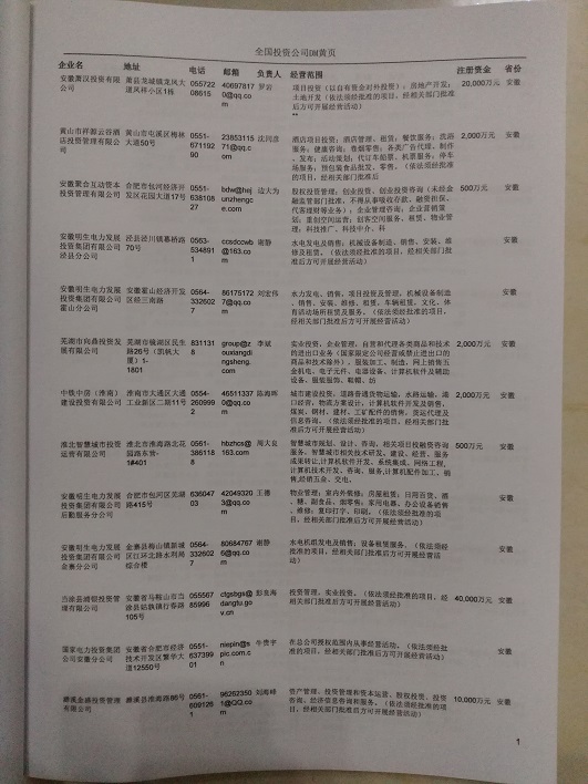 最新投資企業黃頁數據更新日期2024年12月最新,全國投資企業名單共330000條,都是具有一定規模的投資行業的注冊實體企業,數據準確率高,是您開展各項營銷活動的必備資料。企業名單包括:企業名稱、地址、電話(以上必有,以下選有)、傳真、郵箱、登記日期、經營范圍、注冊資金等信息。投資企業黃頁數據為Excel格式,信息可任意修改、復制、打印、導出及導入到傳真、郵件群發等軟件中,無任何限制。