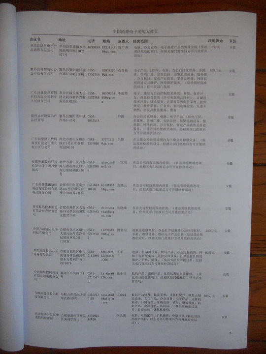 2024年新版中國消費電子采購企業黃頁,收錄了全國各地經營范圍涉及消費電子產品的貿易企業,這些都是頗具實力的消費電子產品的中國采購商。黃頁內容包含:企業名稱、地址、電話、傳真、郵箱、經營范圍、省份、注冊資金等信息。該套黃頁包含一個黃頁光碟加一冊紙質書刊,價格是1200元,共收錄了全國各地大概39593家消費電子產品采購企業。黃頁光碟中是EXCEL格式,信息可任意修改、復制、打印、導出及導入到傳真、郵件群發等軟件中,無任何限制。