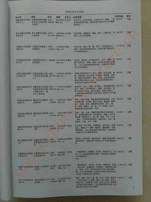 全國化纖企業黃頁 | 全國所有化纖企業黃頁 | 80% - 90% | 1000元 | 附贈上下冊化纖紙質印刷品 |