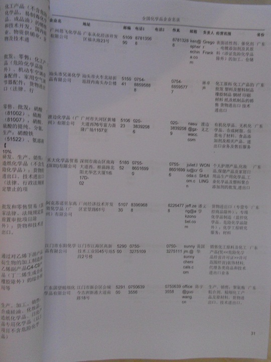 全國化學品企業(yè)黃頁 | 全國化學品企業(yè)黃頁 | 90% | 2000元 | 附贈一冊化學品紙質(zhì)印刷品 |