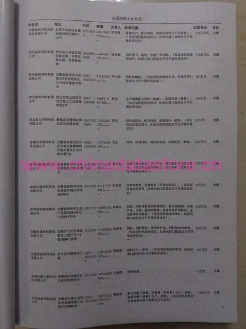 某省或直轄市 | 如上海、浙江飼料企業名單 | 80% - 90% | 600元 | 附贈一冊飼料紙質印刷品 |