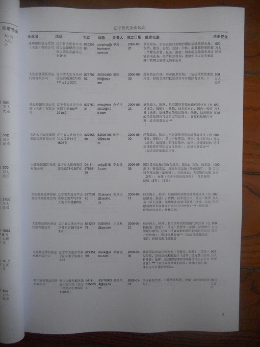 遼寧貨運公司黃頁包括:企業名稱、負責人聯系方式、企業電話、傳真、Email、經營范圍、地址、郵編等信息。