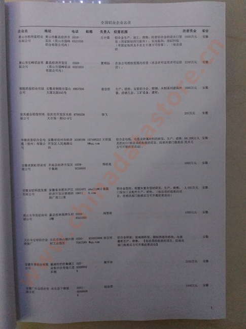 全國鋁業企業黃頁 | 全國所有鋁業企業黃頁 | 80% - 90% | 2000元 | 附贈一冊鋁業黃頁印刷品 |