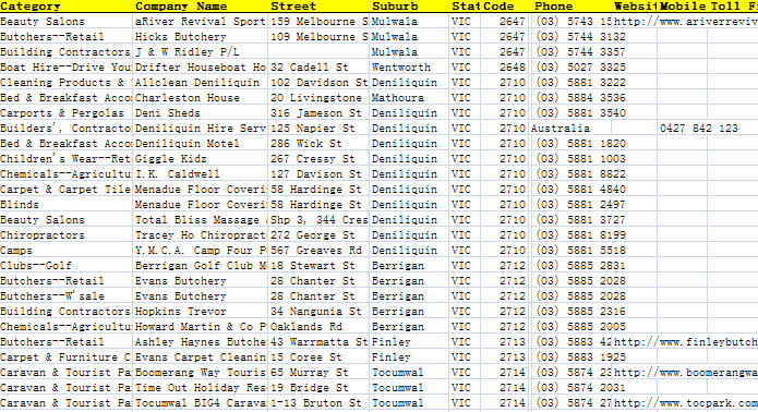 澳大利亞企業(yè)數(shù)據(jù)庫更新于2020年,目前最新版本。企業(yè)數(shù)量超過130萬。包含字段有:企業(yè)行業(yè)、名稱、地址、電話、網(wǎng)址、郵箱等。