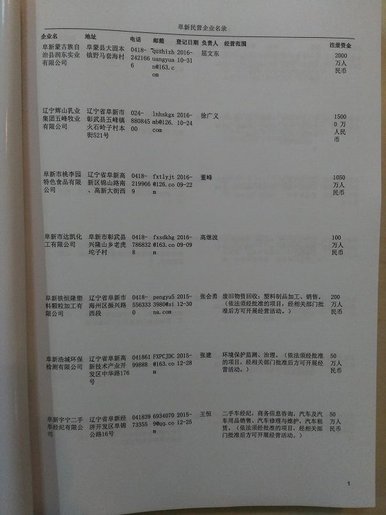 2021版最新阜新企業(yè)黃頁包括《阜新制造企業(yè)黃頁》、《阜新民營企業(yè)黃頁》,現(xiàn)優(yōu)惠價(jià):280元/冊。每冊內(nèi)容包括:單位名稱、地址、郵編、電話、傳真、郵箱、經(jīng)營范圍等;阜新企業(yè)黃頁涵蓋了近幾年來最新成立的、有一定規(guī)模的企業(yè),具有非常高的營銷價(jià)值。有了這套黃頁開展業(yè)務(wù)也有了針對性,也省去了盲目去尋找客戶名單而浪費(fèi)的時(shí)間了,工作效率也會(huì)有很大的提高。歡迎需要阜新企業(yè)黃頁的朋友及時(shí)聯(lián)系我們!