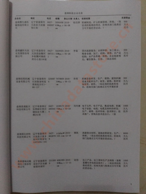 2021版最新盤錦企業黃頁包括《盤錦制造企業黃頁》、《盤錦民營企業黃頁》,現優惠價:280元/冊。每冊內容包括:單位名稱、地址、郵編、電話、傳真、郵箱、經營范圍等;盤錦企業黃頁涵蓋了近幾年來最新成立的、有一定規模的企業,具有非常高的營銷價值。有了這套黃頁開展業務也有了針對性,也省去了盲目去尋找客戶名單而浪費的時間了,工作效率也會有很大的提高。歡迎需要盤錦企業黃頁的朋友及時聯系我們!