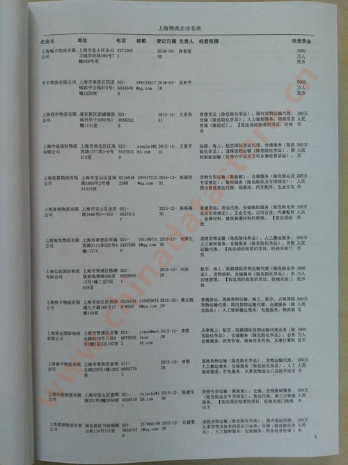 上海物流企業(yè)黃頁(yè) | 所有上海物流企業(yè)黃頁(yè) | 80% - 90% | 600元 | 附贈(zèng)一冊(cè)上海物流紙質(zhì)印刷品 |