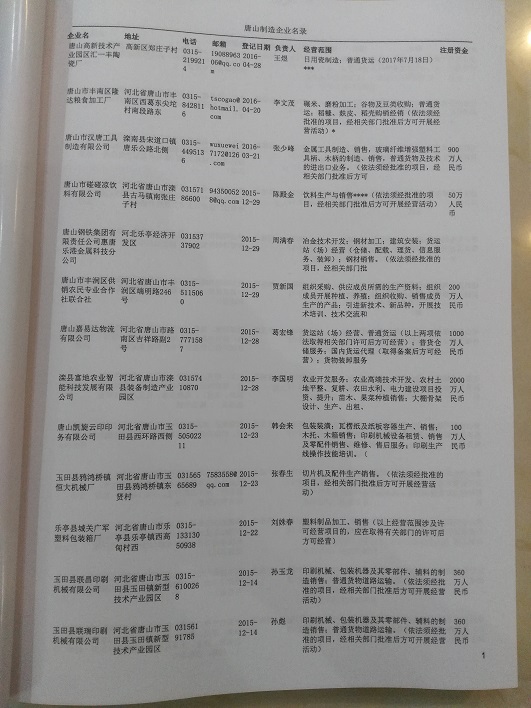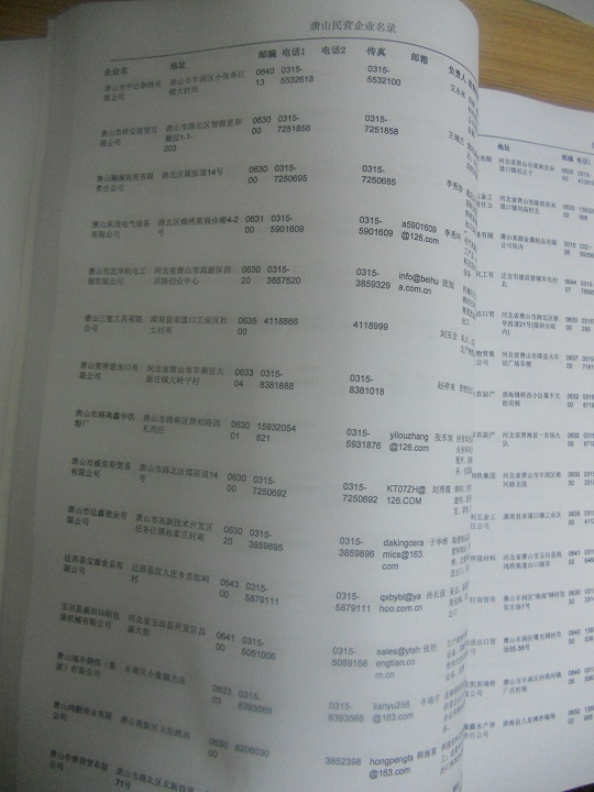 2021版最新唐山企業(yè)黃頁(yè)包括《唐山制造企業(yè)黃頁(yè)》、《唐山民營(yíng)企業(yè)黃頁(yè)》,現(xiàn)優(yōu)惠價(jià):280元/冊(cè)。每?jī)?cè)內(nèi)容包括:?jiǎn)挝幻Q、地址、郵編、電話、傳真、郵箱、經(jīng)營(yíng)范圍等;唐山企業(yè)黃頁(yè)涵蓋了近幾年來最新成立的、有一定規(guī)模的企業(yè),具有非常高的營(yíng)銷價(jià)值。有了這套黃頁(yè)開展業(yè)務(wù)也有了針對(duì)性,也省去了盲目去尋找客戶名單而浪費(fèi)的時(shí)間了,工作效率也會(huì)有很大的提高。歡迎需要唐山企業(yè)黃頁(yè)的朋友及時(shí)聯(lián)系我們!