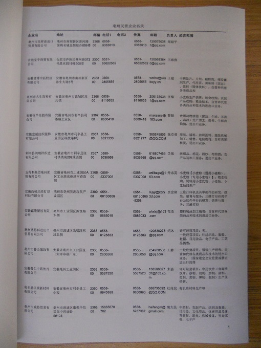 2021版最新亳州企業黃頁包括《亳州制造企業黃頁》、《亳州民營企業黃頁》,現優惠價:280元/冊。每冊內容包括:單位名稱、地址、郵編、電話、傳真、郵箱、經營范圍等;亳州企業黃頁涵蓋了近幾年來最新成立的、有一定規模的企業,具有非常高的營銷價值。有了這套黃頁開展業務也有了針對性,也省去了盲目去尋找客戶名單而浪費的時間了,工作效率也會有很大的提高。歡迎需要亳州企業黃頁的朋友及時聯系我們!