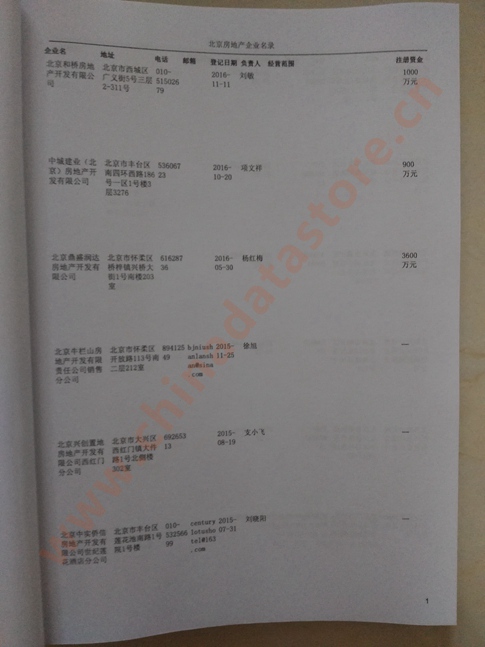 北京房地產企業黃頁 | 所有北京房地產企業黃頁 | 80% - 90% | 600元 | 附贈一冊北京房地產紙質印刷品 |