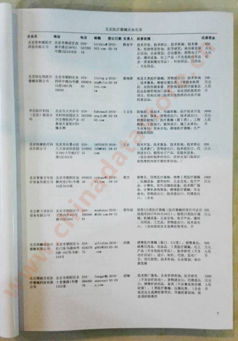 北京醫療器械企業黃頁 | 所有北京醫療器械企業黃頁 | 80% - 90% | 600元 | 附贈一冊北京醫療器械紙質印刷品 |