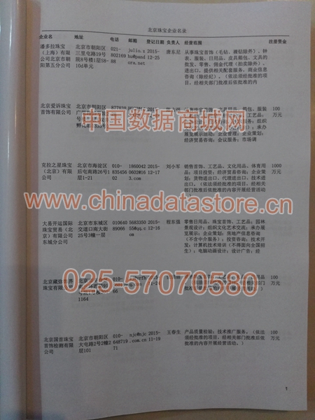 最新北京珠寶首飾生產與貿易企業黃頁數據更新日期2024年12月最新,北京珠寶首飾企業黃頁,都是具有一定規模的北京珠寶首飾行業的注冊實體企業,數據準確率高,是您開展各項營銷活動的必備資料。企業名單包括:企業名稱、地址、電話(以上必有,以下選有)、傳真、郵箱、登記日期、經營范圍、注冊資金等信息。北京珠寶首飾企業黃頁數據為Excel格式,信息可任意修改、復制、打印、導出及導入到傳真、郵件群發等軟件中,無任何限制。