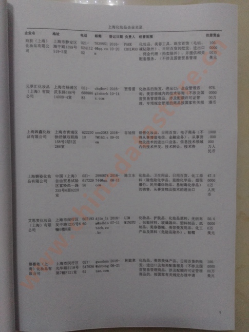上海化妝品企業(yè)黃頁(yè) | 所有上海化妝品企業(yè)黃頁(yè) | 80% - 90% | 600元 | 附贈(zèng)一冊(cè)上海化妝品紙質(zhì)印刷品 |