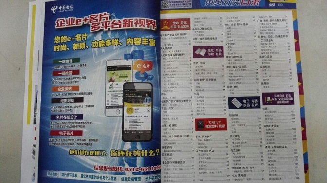 2019年最新常熟電信黃頁 中國電信蘇州分公司出版,16開本