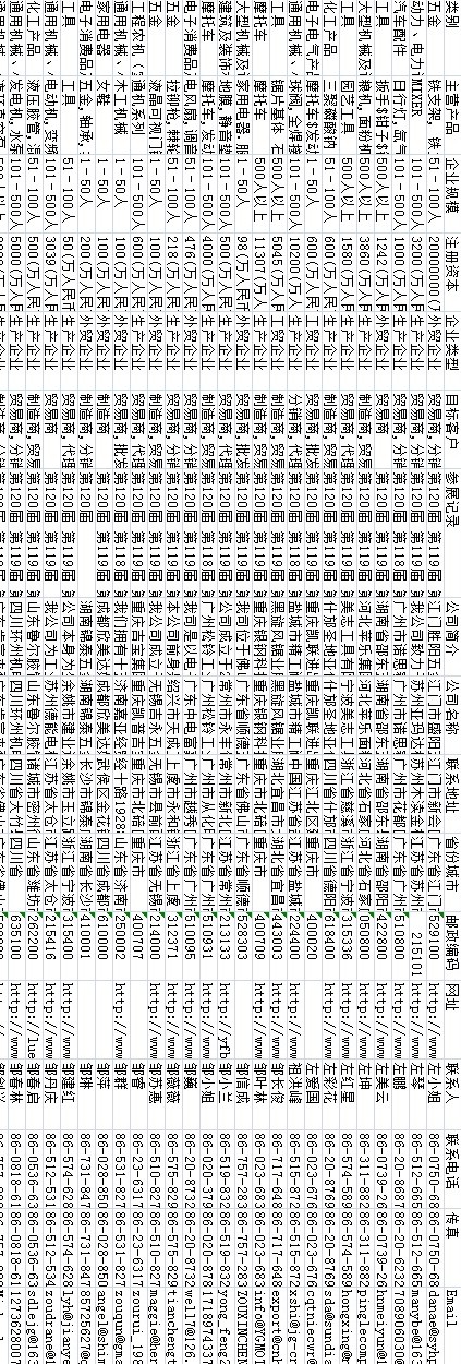 120屆廣交會參展商黃頁數據為Excel格式,信息可任意修改、復制、打印、導出及導入到傳真、郵件群發等軟件中,無任何限制。
