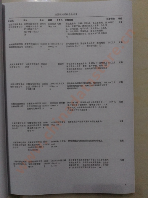 2024年新版中國(guó)飲料采購(gòu)企業(yè)黃頁,收錄了全國(guó)各地經(jīng)營(yíng)范圍涉及飲料產(chǎn)品的貿(mào)易企業(yè),這些都是頗具實(shí)力的飲料產(chǎn)品的中國(guó)采購(gòu)商。黃頁內(nèi)容包含:企業(yè)名稱、地址、電話、傳真、郵箱、經(jīng)營(yíng)范圍、省份、注冊(cè)資金等信息。該套黃頁包含一個(gè)黃頁光碟加一冊(cè)紙質(zhì)書刊,價(jià)格是1200元,共收錄了全國(guó)各地大概10000家飲料產(chǎn)品采購(gòu)企業(yè)。黃頁光碟中是EXCEL格式,信息可任意修改、復(fù)制、打印、導(dǎo)出及導(dǎo)入到傳真、郵件群發(fā)等軟件中,無任何限制。