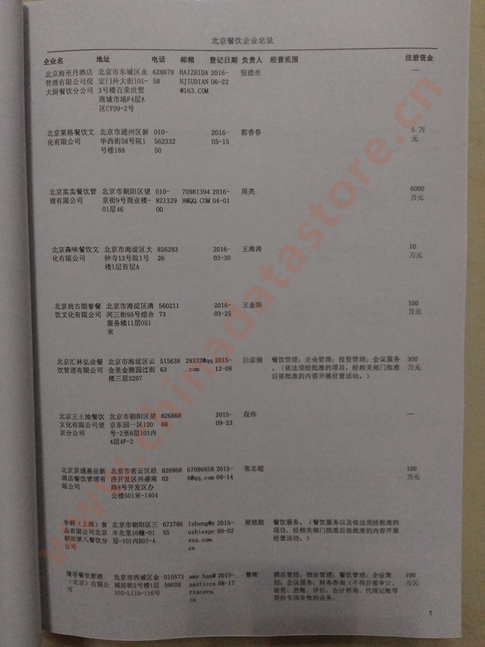 北京餐飲企業黃頁 | 北京各市縣餐飲企業黃頁 | 80% - 90% | 600元 | 附贈一冊北京餐飲紙質印刷品 |
