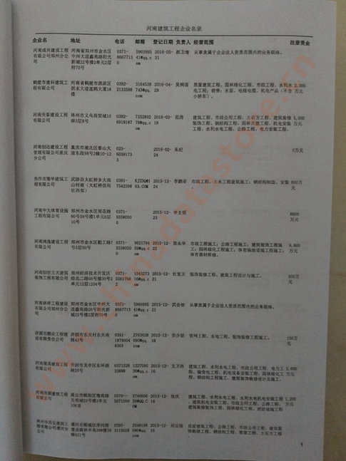 河南建筑工程企業黃頁 | 所有河南建筑工程企業黃頁 | 80% - 90% | 600元 | 附贈一冊河南建筑工程紙質印刷品 |