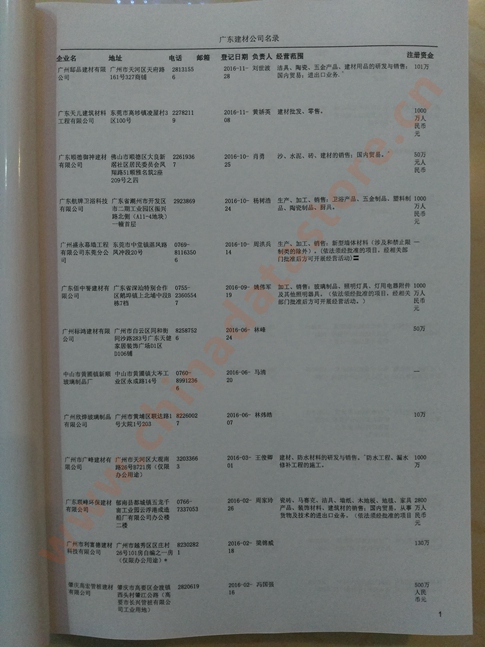 廣東建筑材料企業(yè)黃頁 | 所有廣東建筑材料企業(yè)黃頁 | 80% - 90% | 600元 | 附贈一冊廣東建筑材料紙質印刷品 |