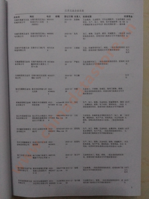 江蘇五金企業黃頁 | 江蘇五金企業黃頁 | 80% - 90% | 600元 | 附贈一冊江蘇五金企業紙質印刷品 |