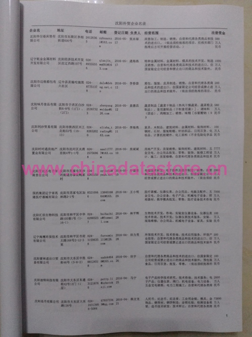 最全沈陽外貿公司黃頁 包括2000年-2024年間所有企業。