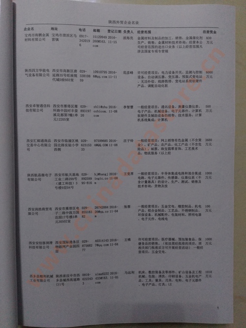 最全陜西外貿公司黃頁 包括2000年-2024年間所有企業。