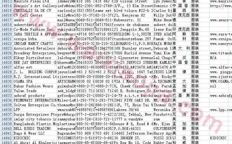 服裝、服飾采購商名單數據為Excel格式,信息可任意修改、復制、打印、導出及導入到傳真、郵件群發等軟件中,無任何限制。