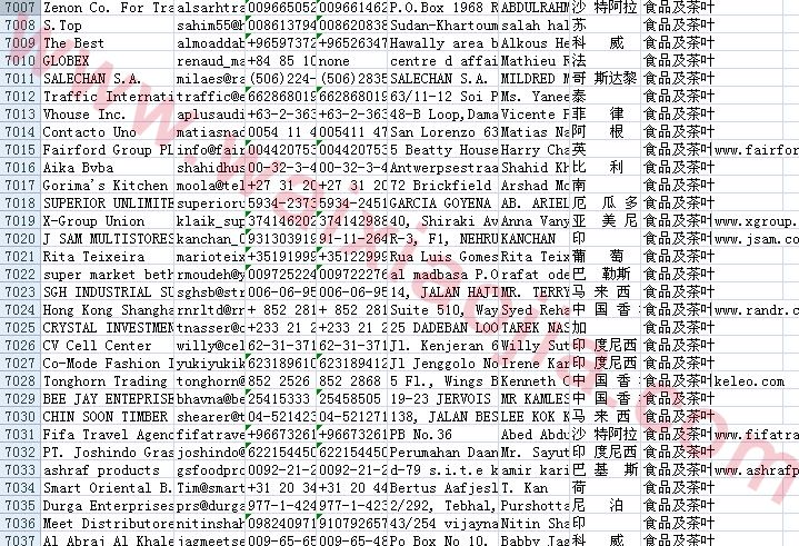 食品飲料茶葉采購商名單數據為Excel格式,信息可任意修改、復制、打印、導出及導入到傳真、郵件群發等軟件中,無任何限制。
