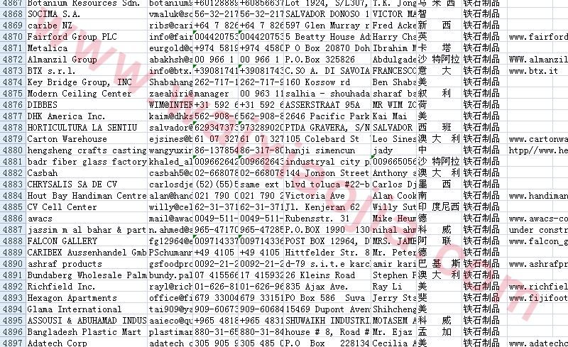 鐵石制品采購商名單數(shù)據(jù)為Excel格式,信息可任意修改、復(fù)制、打印、導(dǎo)出及導(dǎo)入到傳真、郵件群發(fā)等軟件中,無任何限制。