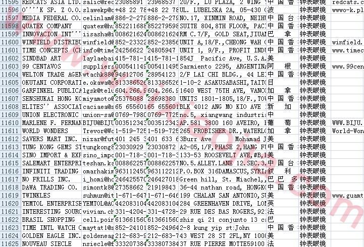 鐘表眼鏡采購商名單數(shù)據為Excel格式,信息可任意修改、復制、打印、導出及導入到傳真、郵件群發(fā)等軟件中,無任何限制。