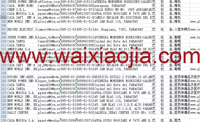 巴拉圭采購商名單數據為Excel格式,信息可任意修改、復制、打印、導出及導入到傳真、郵件群發等軟件中,無任何限制。